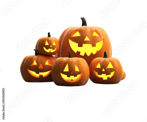 halloween, pumpkin, holiday, seasonal, autumn, fall, glowing, orange, face, skittish, celebration, decoration, light, night, 5, group, closeup, festive, fun, smiling, happy, family, children, trick or treat, horror, scarey, lit, art, vegetable, harvest, holiday decorations, fall season, creepy, dark, background, isolated, studio shot, no people, tradition, culture, us, three-dimensional