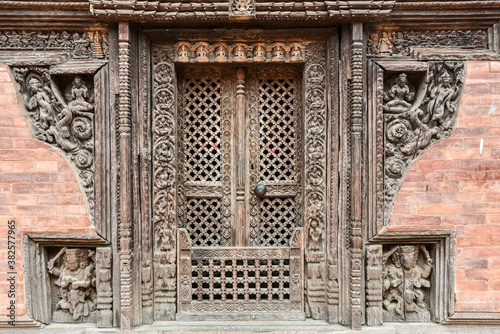 wood, facades, ancient, architecture, art, artisan, asia, asian, brick, carving, city, craft, detail, door, exterior, heritage, historical, intricate, kathmandu, nepal, nobody, oriental, palace, temple, travel, unesco, urban, wall, window, window, wooden, brick wall