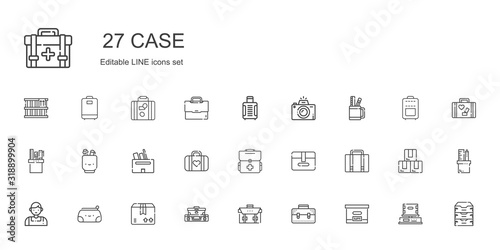 case, icon, set, vector, box, briefcase, suitcase, package, crayons, salesman, baggage, first, aid, kit, photo, archive, illustration, symbol, signs, design, object, isolated, white, flat, bag, background, pictogram, outline, business, simple, graphic, web, element, transportation, silhouette, line, work, handle, travel