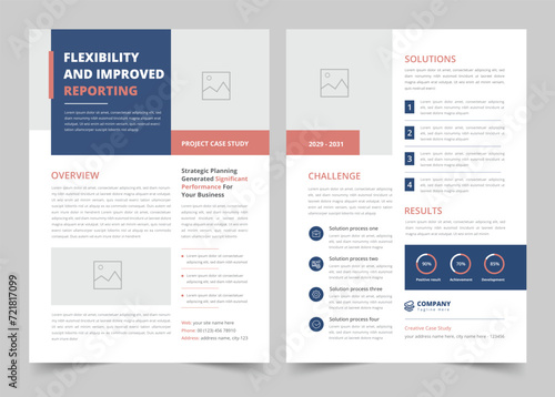 Case Study Flyer Design vector template, Business Case Study Booklet Layout, Double Side Flyer