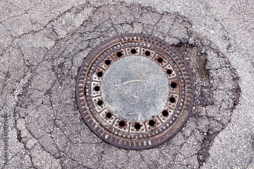 pavement, metal, heavy, cast iron, manhole cover, asphalt, canalization, circle, city, cover, design, detail, drain, drainage, footway, grimy, hatch, hatchway, hole, infrastructure, iron, lid, manhole, old, road, rough, round, rust, sewage, sewer, sewerage, sidewalk, steel, street, town, underground, urban, paseo, water, water supply