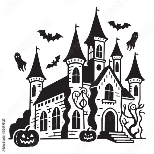 halloween, silhouette, palace, white, background, skittish, night, dark, castle, gothic, mysterious, creepy, ghost, moon, shadow, scarey, architecture, fantasy, monochrome, october, horror, nightscape, ghostly, vintage, minimalist, outline, fairy tale, old, night time