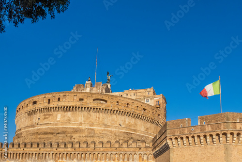 castle, sant'angelo, clear, sky, roma, italy, copy space, travel, journey, outdoors, latium, day, castel, building, architecture, exterior, city, international, landmark, earth, location, tour tourism, sunlight, light, italian, culture, ancient, flag, ensign, national, museum, nobody, blue, colours, historical building, destination, nature, stone, rock