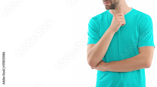 man, guy, casual attire, male, caucasian, t-shirt, man, studio, isolated, background, white background, copy space, banner, advertisement, young
