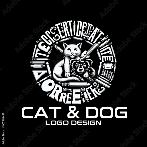 logotype, vector, illustration, design, silhouette, art, cat, dog, cat, puppy, dog, love, of, pet, kitten, pet, cute