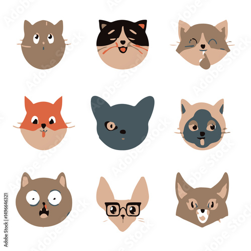 animal, cat, cartoon, vector, dog, set, icon, illustration, head, animal, face, pet, fox, baby, bear, pig, funny, character, rabbit, collection, mammal, cow, panda, fun, cute