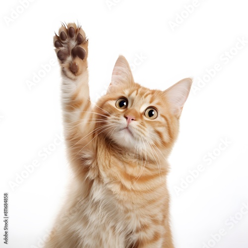Cat giving high five. Kitten reaching up with paw. Generative AI.