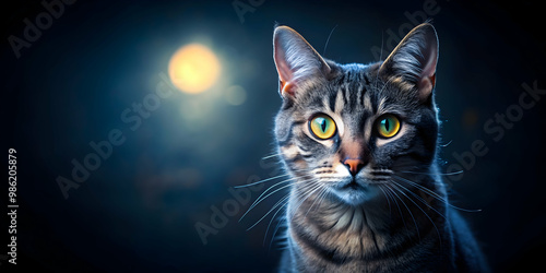 Cat in the night with glowing eyes , cat, night, feline, glowing eyes, dark, mysterious, animal, moonlight, shadows, black