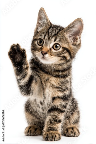 cat, raised, paw, funny, kitten, isolated, animal, pet, short hair, adorable, background, baby, young, sitting, felino, short, hair, beautiful, cute, white, playful, striped, female, mammal, nice, carnivore, curious, purebred, muzzle, looking, furry, charming, stretch, beauty, pedigreed, soft, curiously, breed, staring, little, whisker, sweet, domestic, 1, pretty, small