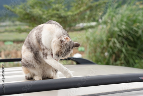 fun, cat, itch, pet, pretty, laundered, domestic, portrait, beautiful, adorable, scratching, flea, mammal, abandoned, activity, animal, cute, felino, fur, home, homelessness, little, scene, scraping, tick, tortoiseshell, funny, joy, clean, car, roof, daytime