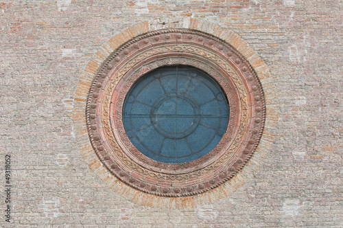 bobbio, duomo, cathedral, church, architecture, architectural, architectonic, historical building, monumental, mediaeval, urban, emilia-romagna, edifice, religion, religious, ecclesiastical, building, window, mosaic, gothic, decorative, decoration, ornamental, round, piacenza, century, ancient, city, town, village, perspective, brick wall, object, glasses, tracery, carved, closeup, detail, macro, holiday maker, tour tourism, outside, exterior, emilia-romagna, emilia-romagna, italy