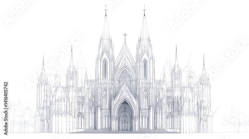 cathedral, architecture, wireframe, building, design, rendering, church, structure, geometric, construction, drawing, exterior, white, vignetting, architectural, religion, gothic, art, detail, illustration, graphic, pattern, outline, front, view, facades, historical building, tall, tower, cross, vertical, presentation, project, artwork, style, concept, landmark, urban, place, religious, ancient, background, graphic design, visual, architect, engineering, worship, city landscape