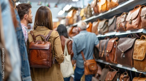 couple, caucasian, shopping, leather, bag, boutique, examining, handbag, retail, selection, consumer, fashion, accessory, style, luxury, choice, variety, buying, shop, store, lifestyle, focused, consumerism, market, interaction, quality, upscale, detailed, trend, diverse