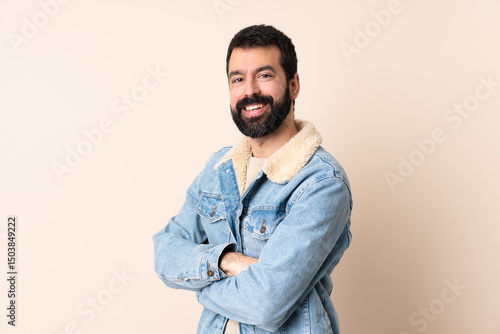 Caucasian man with beard over isolated background with arms crossed and looking forward
