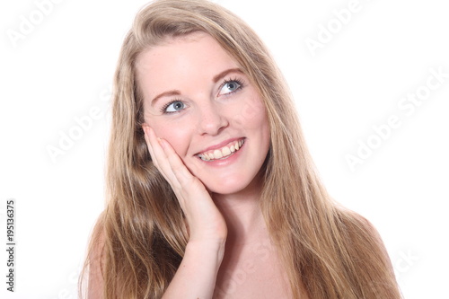 woman, portrait, beauty, young, face, hair, blond, isolated, white, smile, model, pretty, fashion, blond, cute, happy, 1, smiling, person, closeup, skin, eye, people, looking, human, joy, positive, girl, happiness, red, youth, trendy, stylish, fun, studio, female, background, attractive, beautiful, funny, friendly, gesture