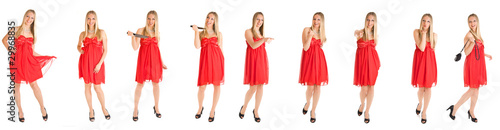 dress, woman, red, isolated, caucasian, beauty, romantic, knife, standing, blond, long hair, white, sexy, adult, young, kiss, love