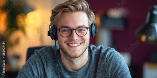 modern, relaxed, relaxing, daily, music, entertainment, blond, sweater, peaceful, friendly, comfortable, positive, sharpened, casual clothes, smiling, young, joyful, caucasian, chill, bright, listening, indoor, cheerful, study, earphones, lifestyle, hipster, happy, trendy, ambience, individual, casual attire, content, male, personable, person, expression, goggles, closeup, tech, concentrated, ambient, portrait, engaging, audio, mood, home