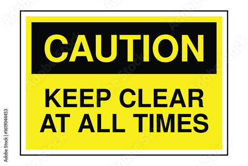 CAUTION Sign – Keep Clear at All Times Safety Warning with Yellow Header and Black Text, Obstruction-Free Zone Label for Emergency Access and Workplace Compliance, Transparent Background