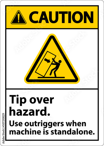 Caution Tip Over Hazard Use Outriggers Label On White Background