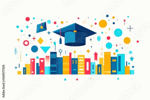 concept, graduation, cap, book, education, achievement, cognition, success, celebration, learning, college, university, academic, ceremony, colourful, vector, illustration, creativity, student, scholarly, design, symbol, bookshelf, day, motivation, inspiration, colours, art, festive, character, fun, graphic, talent, skill, artwork, higher, literacy, diploma, study, intellectual, growth, journey, pride, pursuit, future, development, sharing, visual
