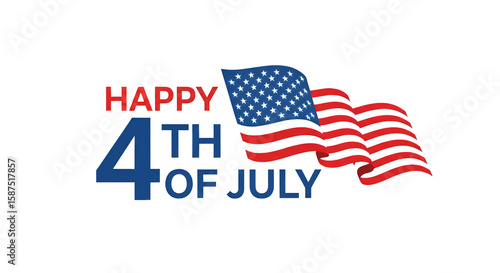 Celebrate Independence Day with Patriotic Design Waving Flag and Festive Text
