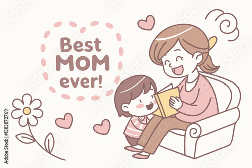 Celebrating Mothers A heartwarming illustration of a mother reading to her child