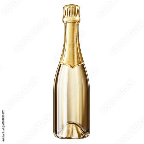 Celebration champagne bottle with detailed gold foil, isolated transparent background.