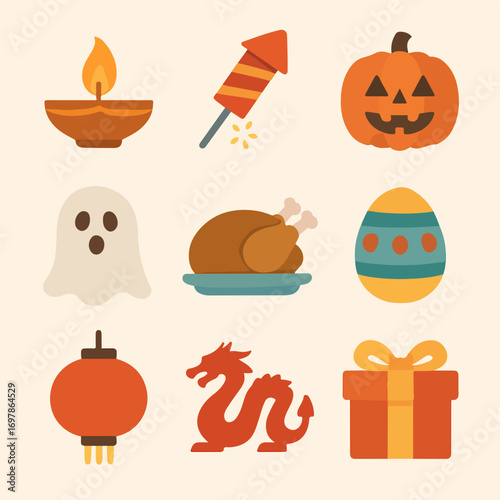 Celebration Holidays Icons Festive Events Symbols for Festivals and Traditions