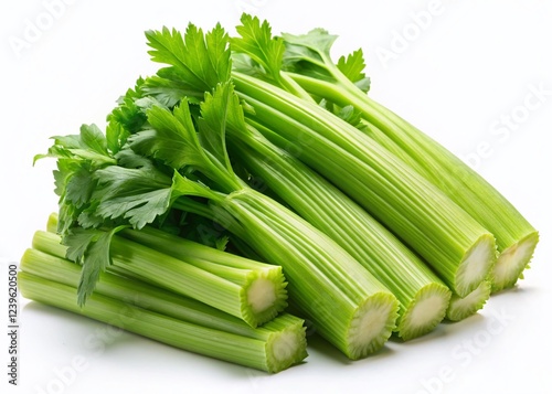 celery, vegetable, produce, food, healthy, green, isolated, cut-out, clipping path, fresh, crisp, vibrant, vertical, pile, bunch, bundle, stick, raw, uncooked, natural, organic, vegetarian, vegan, diet, nourishment, cooking, ingredient, receipe, salad, soup, stir fry, side dish, garnish, decoration, still life, photo