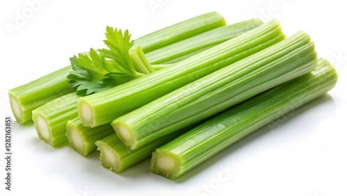 celery, stalk, vegetable, green, fresh, food, healthy, diet, nourishment, eating, culinary, cookery, ingredient, organic, produce, plant, crisp, texture, isolated, white, background, studio, photo, raw, cut, closeup, detail, bright, colours, natural, stem, leaf, parsley, vibrant, clean, simple, dietary