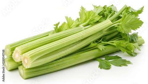 celery, stalk, vegetable, green, fresh, food, healthy, diet, nourishment, eating, culinary, ingredient, cookery, cooking, produce, crisp, crunchy, organic, natural, plant, botanical, stem, leaf, textured, vibrant, colours, white, background, isolated, studio, photo, image, visual, macro, detail, closeup, object, bright, clean, contrast, simple, minimalist