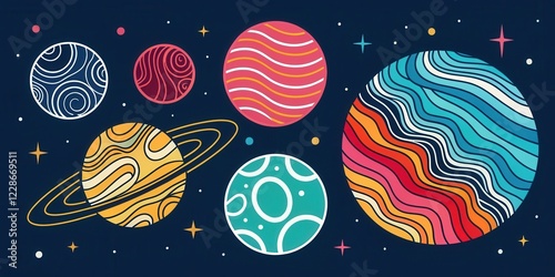 Celestial Bodies A Vibrant Cosmic Tapestry of Ornamental Planets and Stars