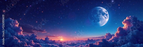 Celestial canvas with twinkling stars and a silvery moon, galaxy, nebula, night sky