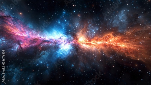 nebula, galaxy, space, cosmos, universe, astronomy, astrophysics, star, cosmic, celestial, night sky, deep space, outer space, science fiction, artwork, digital artwork, background, wallpaper, texture, pattern, vibrant, colourful, interstellar, fiery, orange, blue, purple, red, light, bright, energy, power, explosion, collision