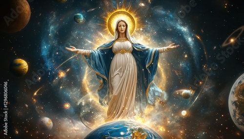 celestial, figure, cosmic, planet, star, galaxy, divinity, spirituality, universe, light, aura, beauty, serenity, space, vision, escape, nature, harmony, aethereal, atmosphere, wonder, creation, nirvana, style, magnificence, imagery, colours, radiance, illumination, grace, worship, faith, guardian, myth, legend, culture, symbolism, presence, blessing, connection, journey, exploration, balance, essence, transcendence, inspiration, exaltation, galaxy