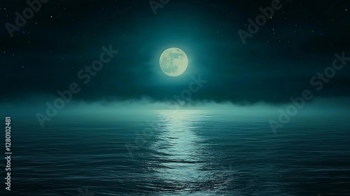 Celestial glow, Moonlit water and ethereal night scene tranquility