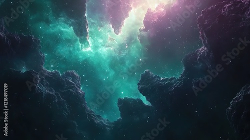 Celestial Nebula and Stars in Purple and Teal Creating a Galactic Background