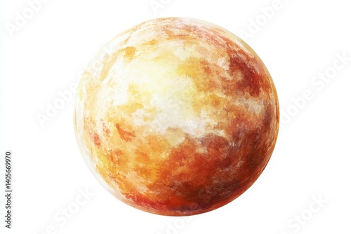 Celestial sphere, fiery orange and pale yellow. Detailed, round, hot planet