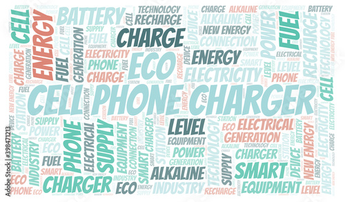Cell Phone Charger typography word cloud create with the text only.