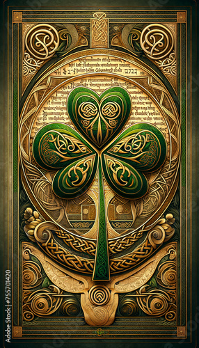 Celtic Elegance: Shamrock and Ancient Manuscript