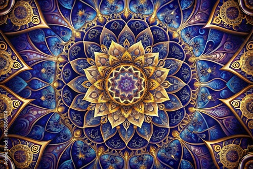 Centered geometric abstract design with vibrant colors for modern art and home decor