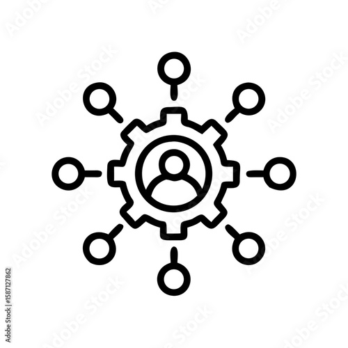 Central human figure is connected to several nodes, showcasing the concept of network or management in minimalist art form.