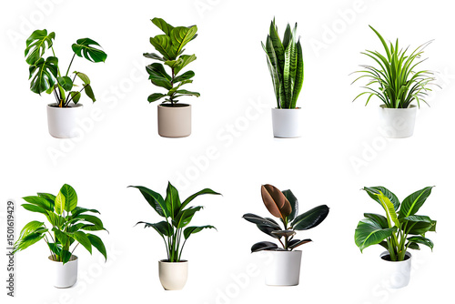 ceramic planters, various indoor plants, potted houseplants, succulents, ferns, tropical foliage, minimalist plant decor, natural lighting, white background, ceramic pot, green leaves, plant arrangeme