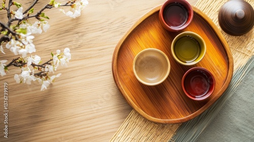 tea, cup, ceramic, wood, tray, zen, tabletop, warm, pastel, relax