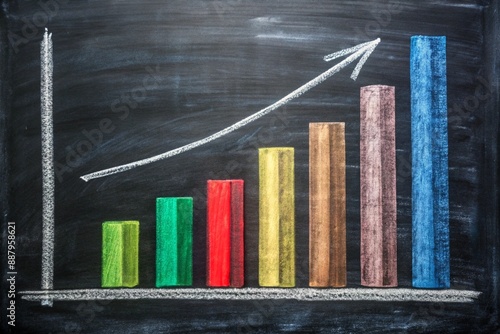 Chalkboard with a colorful growth chart, colored columns representing economic growth, drawn with chalk