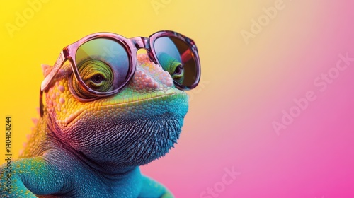 chameleon, sunglasses, reptile, colourful, vibrant, hallucinogen, cool, trendy, lizzard, funky, iridescent, animal, skin, texture, eyewear, fauna, pattern, exotic, style, portrait, bright, gradient, background, yellow, pink, eye, scale, chromatic, mutation, fantastic, rainbow, abstract, wild, unique, modern, creative, artistic, illustration, digital, design, fancy, expression, summer, relaxation, sunshine