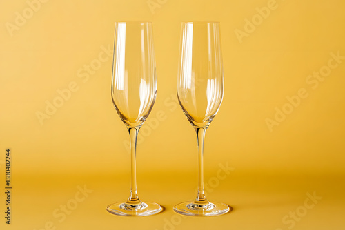 champagne glasses lined up for the wedding toast - representing the celebration of love and unity yellow background