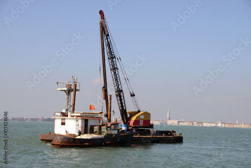 venice, italy, lagoon, work, crane, building site
