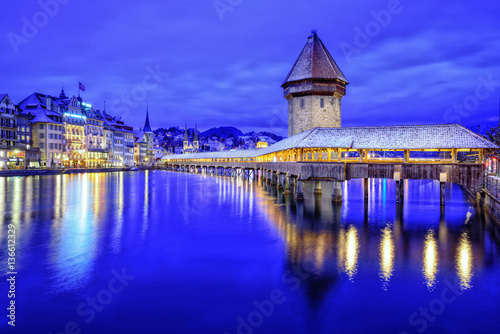 lucerne, switzerland, swiss, town, city, chapels, bridge, water, tower, river, blue, hours, evening, night, white, snow, wood, wooden, light bulb, light, cold, tile roof, promenade, hotel, shop, center, across, winter, christmas, time, season, europa, famous, travel, sky, old, architecture, building, landmark, reflections, lake, mediaeval, attraction, panoramic, house, city landscape, alps, beautiful