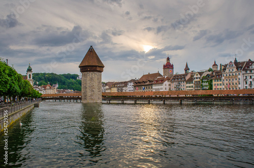 Chapel Bridge in Lucerne on sunset, Switzerland